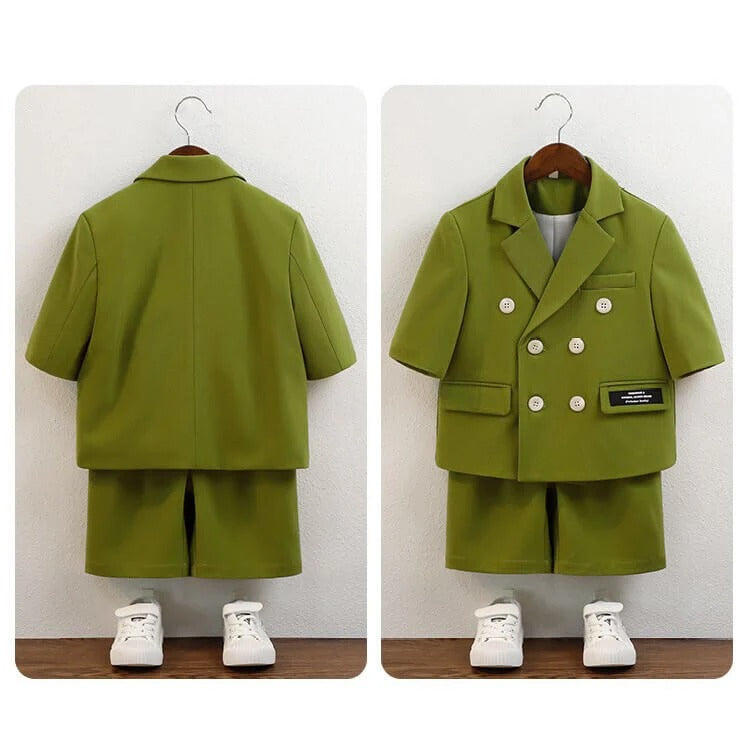 Une tenue de cérémonie pour bébé qui se distingue par son audace et son originalité avec une teinte verte et des détails finement travaillés. Conçu pour offrir prestance et confort, il associe une veste à manches et un short assorti, idéal pour les journées estivales. Les boutons et les poches décoratives renforcent son allure moderne qui ne passera pas inaperçue auprès des invités.