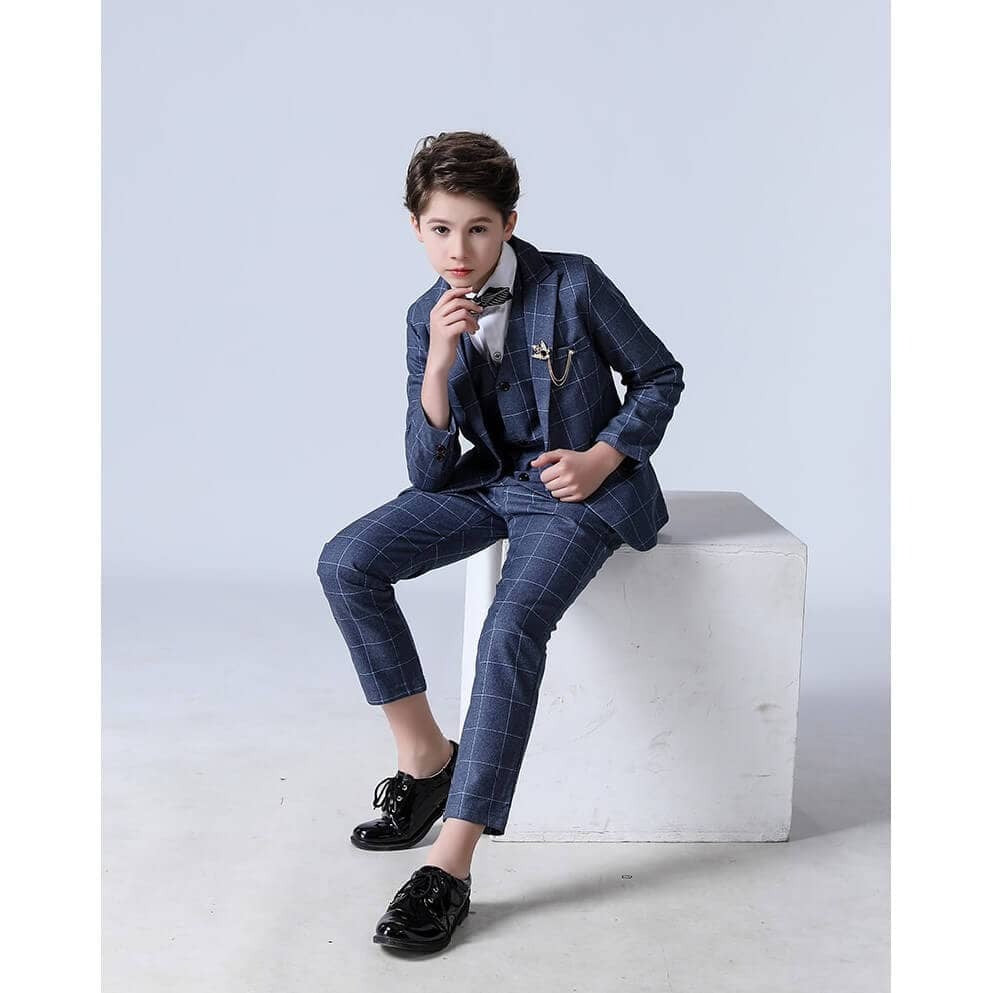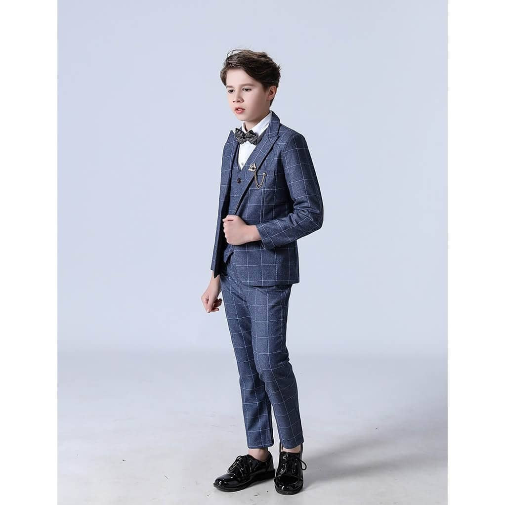 Voici une de nos tenues qui allie tradition et modernité pour sublimer les grands événements. Un costume bleu à carreaux avec une coupe droite créant un style original qui plaît autant aux enfants qu’aux parents. Confectionné dans un tissu agréable à porter, ce modèle est pensé pour que les garçons puissent bouger librement tout en restant élégants. Mariages, fêtes de famille ou spectacles scolaires : cette tenue sait se faire remarquer.